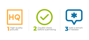 Make sure the pictures and videos you take are as high-quality as possible. Our clients need to see robust and unmistakable evidence backing the information provided. Blurry photos or images that don’t meet the instructions' requirements will not be approved.