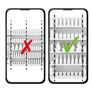 Denke daran, einen 20 % Überlappungsbereich zwischen den Fotos einzuhalten. Das bedeutet, dass beim Fotografieren des zweiten Regalsegments ein Teil des vorherigen Regalsegments noch im Bild sichtbar ist.