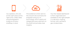 • Planogram execution: achieving high product recognition rates helps generate more accurate planogram compliance reports and enables field sales teams to make decisions and make changes in store.