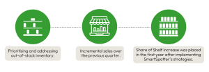 Share of Shelf increase was placed in the first year after implementing SmartSpotter’s strategies.