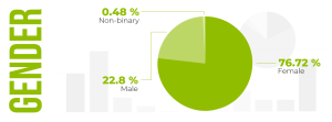 Most of our spotters are women—76.72%, versus 22.8% male—but there is also a small network of Spotters who identify as Non-binary.