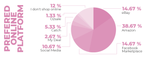 Amazon emerged as the preferred online platform, securing 39.73% of votes, followed by Facebook Marketplace (15.07%) and Social Media (10.96%). Surprisingly, 12.33% stated they do not shop online