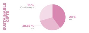 50.68% prioritised buying gifts from local businesses, and 41.1% preferred sustainable products. Notably, 28.77% were considering sustainable options.